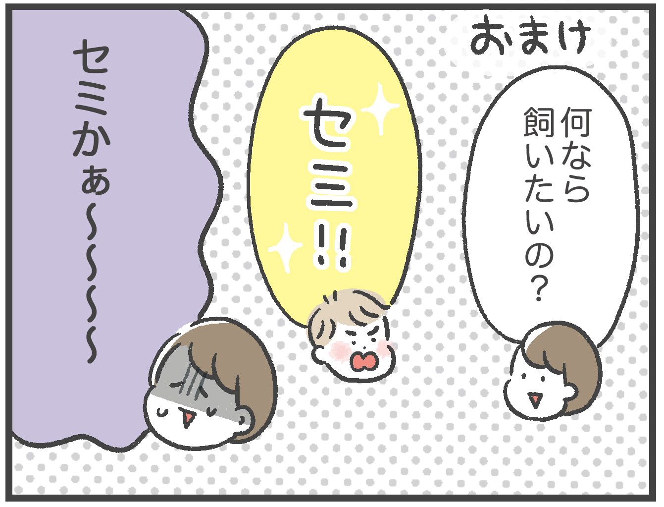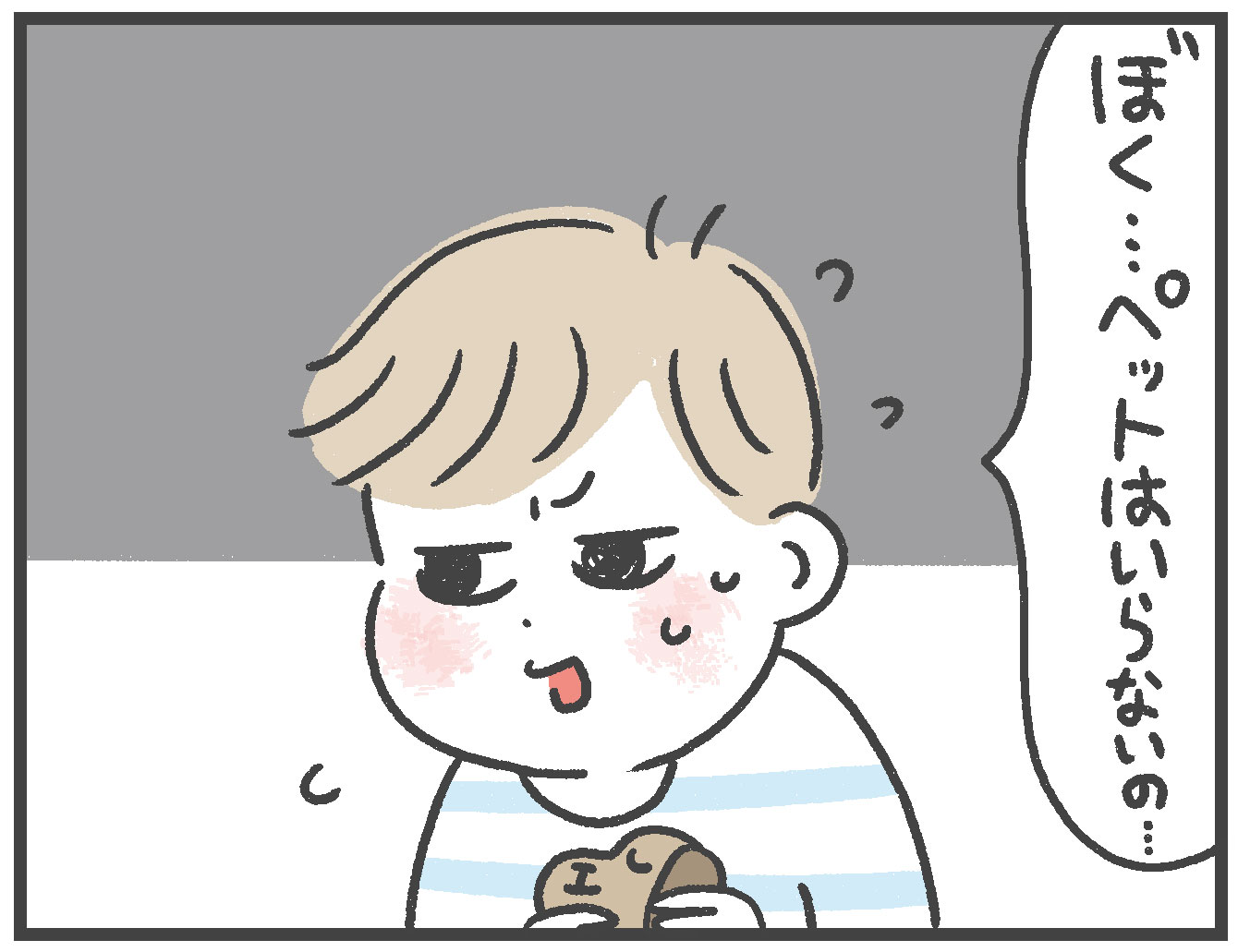 全く飼うつもりなく(そもそもマンションがペット禁止)何気なく聞いてみただけなのですが、ちょっと動物と住むのはまだ怖かったらしい息子、