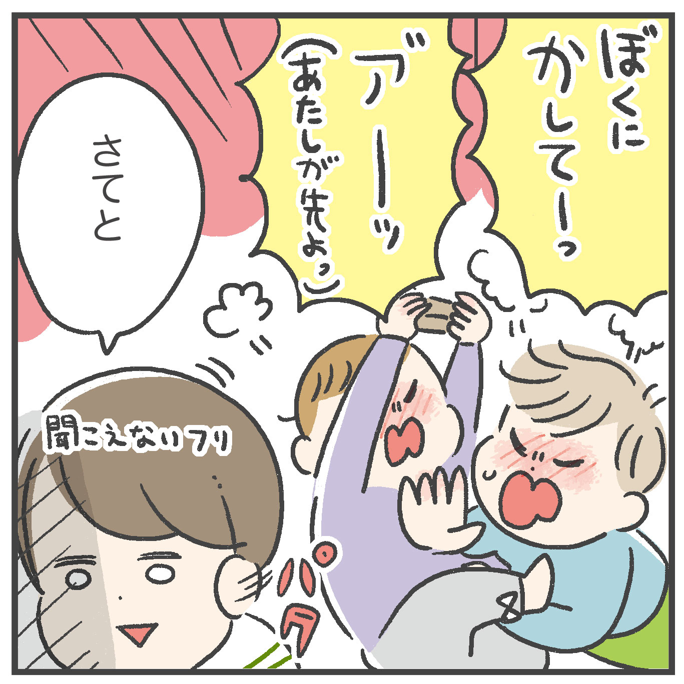 そして、わがやの息子と娘が取り合いをして大騒ぎで、全く同じ光景だったので思わずコメントしちゃいました♪
