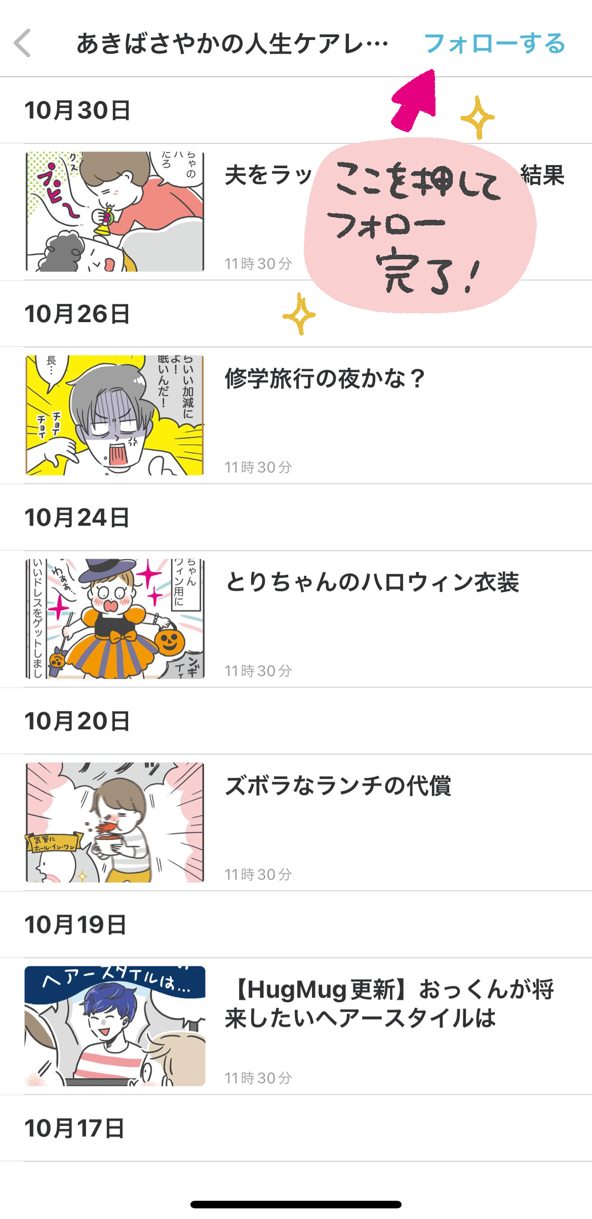 ③右上の「フォローする」を押していただけますとフォローは完了です!