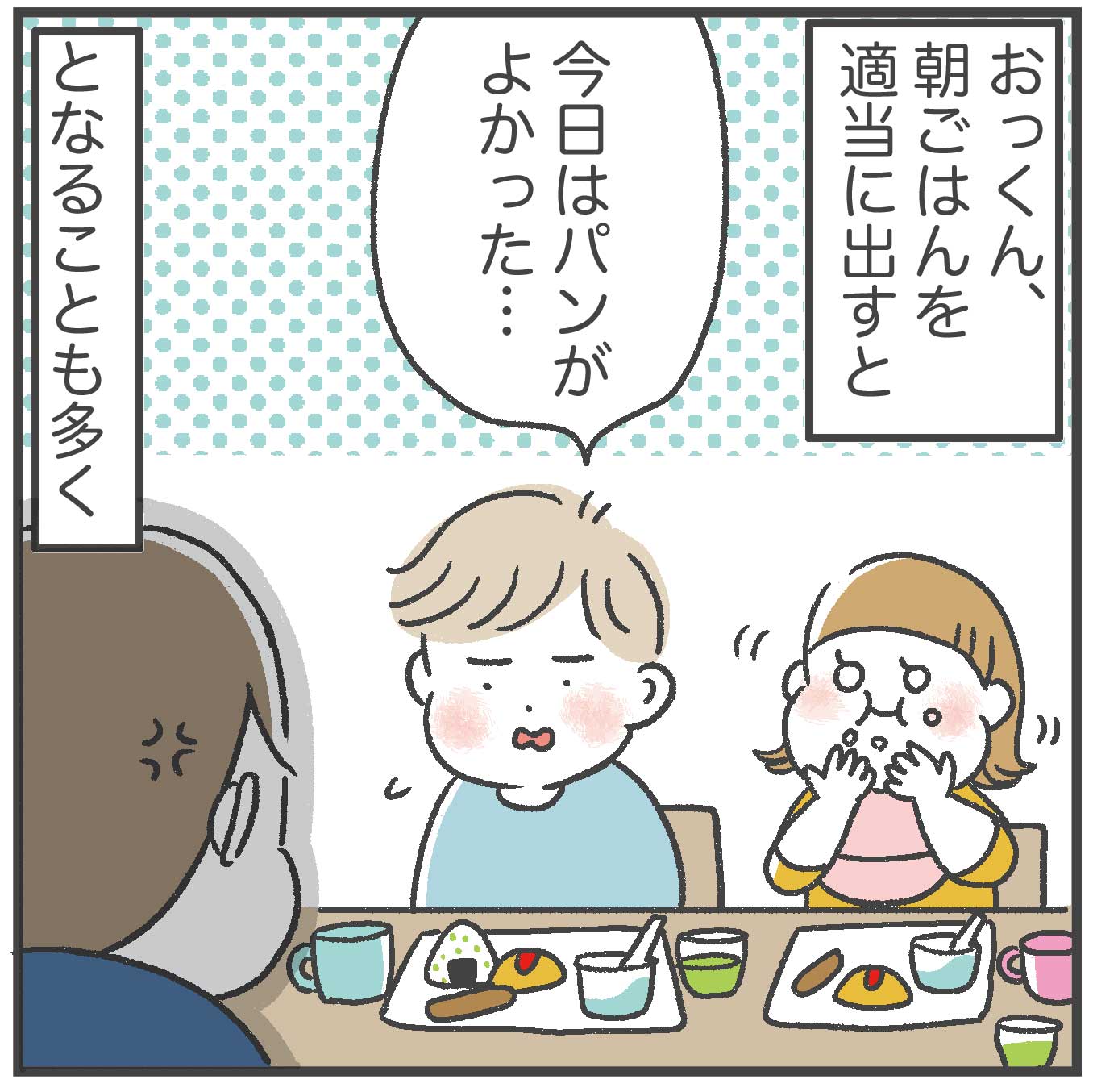 ちなみに私はパン派、夫はご飯派なので、4人全員違うものを食べている時もある我が家です(めんどくさいけど食べないよりいい…!)