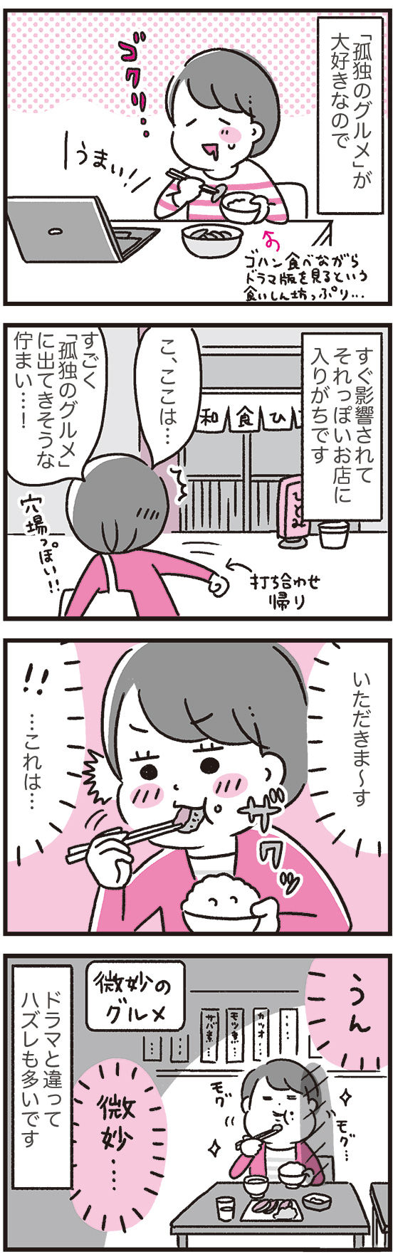 孤独のグルメ私も好きで、出てくる料理が食べたくなって自分で作るんですけど(ニラ玉とか、できそうなやつだけ)、それこそ微妙なことになります!(笑)