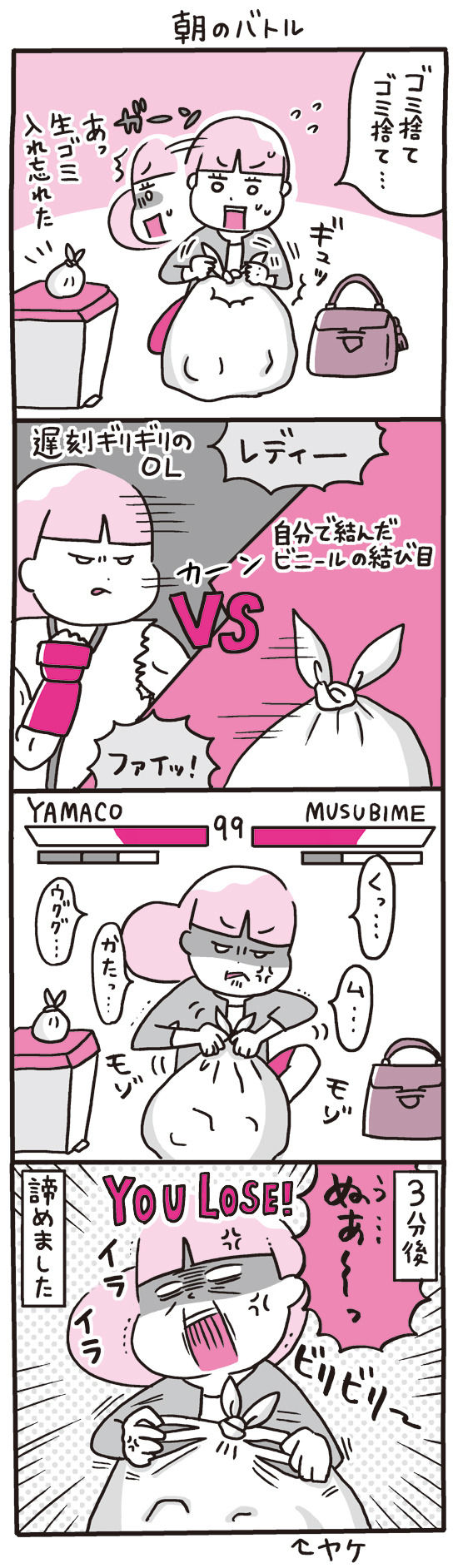 普段、さっくりとしか袋を結ばないのに(一応、中身は簡単に出ないようにはしています)、その日に限ってしっかり結ぶと、「あ」って入れ忘れたものが出てくる。