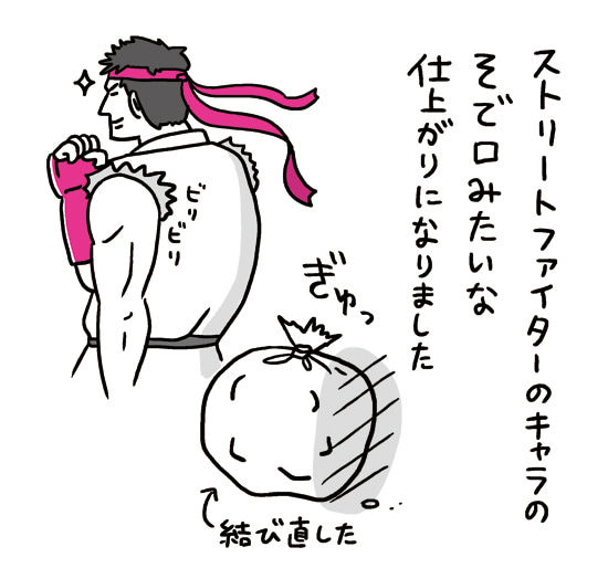 鋭利なゴミ(お菓子の箱とか、チラシの折れた部分とか)の角っこがビニールに当たって、ピ~~~…って袋が裂けて室内でゴミが散乱したときのあの絶望感たるや…(´ε`;)