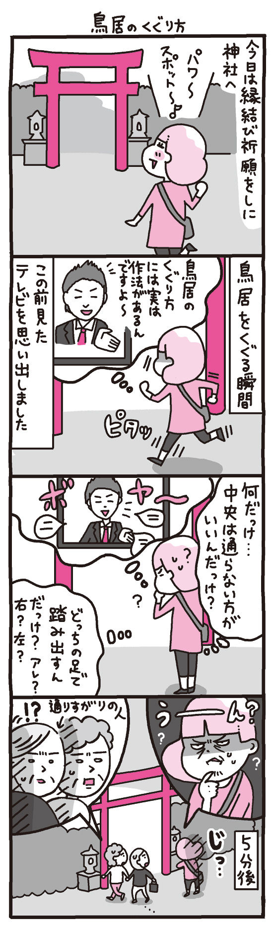 「鳥居のぐぐり方」と読んでしまって、てっきりGoogleで鳥居を調べた話しだと思った私でした(^ω^)