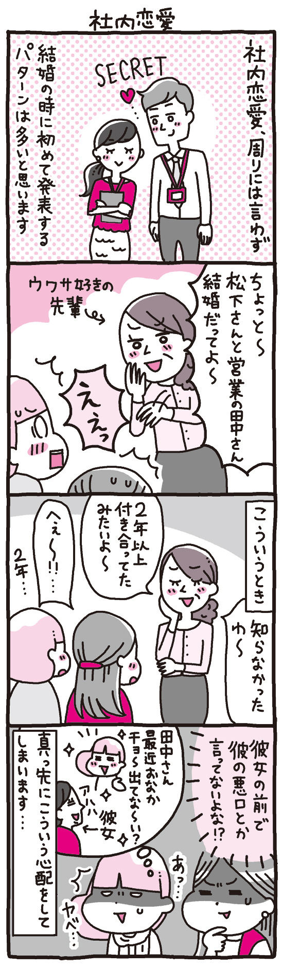 社内恋愛をしていた友達いわく「気を使って苦労した」とのことでした。