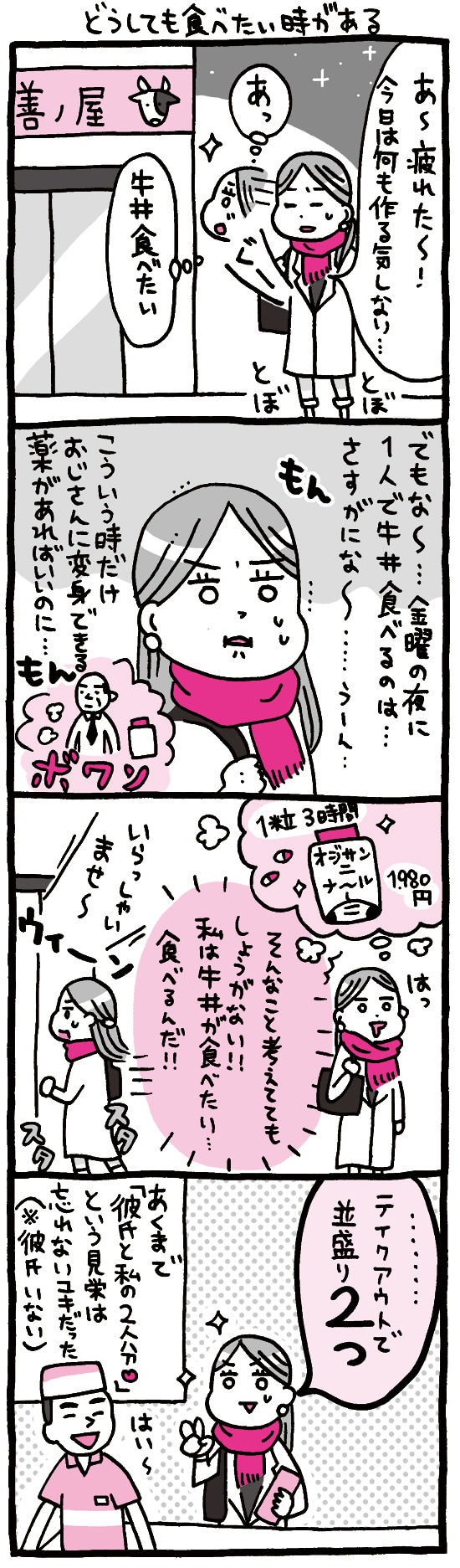 どうしても食べたい時がある 2015年12月26日 第126話 どうしても食べたい時がある-----ブログランキングに参加中です▼クリックで応援いただけたら嬉しいです☆----- 「OLマンガ「しくじりヤマコ」」カテゴリの最新記事 < 前の記事次の記事 > コメント コメント一覧 (16) 1. 音☆ 2015年12月26日 21:46 返事来るとは思ってなくて嬉しかったです\(^o^)/ 牛丼はほとんど食べないけど、確かに入りづらいですね。でもおじさんにはなりたくないなぁ(笑) 男の人からしたら、スイーツの店には入りづらいでしょうね~。 0 akibasayaka がしました 2. はちさん 2015年12月26日 22:48 以前、酔っ払った勢いで牛丼1人分テイクアウトしました。牛丼をバッグに入れて電車で帰り、家に着いてから食べようと思ったら気持ち悪くて食べれず…。しかもバッグが牛丼臭いし(^^;; 女性がもっと入りやすかったらいいですよね~。 0 akibasayaka がしました 3. 骨太のおなご 2015年12月27日 00:36 若い時には恥ずかしくて入れなかった牛丼屋。 今なら平気でそこで食べていくこともできます。 2人分買ってしまうなんて若さの証拠! そんな時もあったな~遠い目 0 akibasayaka がしました 4. ふらんまり 2015年12月27日 01:46 こんにちは~~ トピックスで見かけてファンになりました❤︎ 私は現在大学生ですが普通に一人で寿司屋にも入るし居酒屋にも入ってしまいます。 高校生の頃には制服を着ながらにしてラーメン屋に牛丼屋どこへでも一人で入っていました笑 ヤマコさんの記事を見て自分の女子力のヤバさを実感しました…(´Д` )見栄ぐらいでも持たないとwww 0 akibasayaka がしました 5. shikujiriyamaco 2015年12月27日 10:05 >音☆さん こちらこそコメントいただき嬉しかったです♡ えっなりたくないですか?笑 本当入り辛いですよね…! 外から丸見えなのも嫌なんですよね~>< 0 akibasayaka がしました 6. shikujiriyamaco 2015年12月27日 10:12 >はちさんさん 酔っぱらった勢い!(笑) そして、バッグに入れる気持ち分かります! でも、電車にいい匂いが漂いそうです(笑) 本当は紅ショウガいっぱいのっけて店内で食べたい~!! 女性専用店とかあったら嬉しいですよね^^♡ 0 akibasayaka がしました 7. shikujiriyamaco 2015年12月27日 10:16 >骨太のおなごさん せ、先輩っ!!(笑)かっこいいです!! やっぱりお店で食べるのが美味しいですよね…! 結局2人分食べるんでただ太るだけだし…(笑) 0 akibasayaka がしました 8. shikujiriyamaco 2015年12月27日 10:20 >ふらんまりさん こんにちは~♡ありがとうございます!! 大学生なのにこんな強者が…!!!(笑) 寿司屋に居酒屋、かっこいい!( ̄▽+ ̄*) いやいや…結局2人前もりもり食べることになるので、女子力どうなんでしょう…笑 0 akibasayaka がしました 9. 夏美 2015年12月29日 01:50 こんばんは!!!いつも更新楽しみにしてます(((o(*゚▽゚*)o))) そして…牛丼の丼が、「井」になってて牛井になってるのはわざとでしょうか?(>人<;) 0 akibasayaka がしました 10. shikujiriyamaco 2015年12月29日 18:38 >夏美さん ななななんと!!!笑 わざとではありません! 誤字というか、丼ってこういう字だといつからか自分の中で変わっていたようです…なぜ…!!笑 教えていただきありがとうございますー! 0 akibasayaka がしました 11. くろ 2015年12月31日 10:10 私も必ず2人分買って翌日、お弁当代わりに持って行きます。早く一緒に食べに行ける人みつけたい‼ 0 akibasayaka がしました 12. shikujiriyamaco 2015年12月31日 23:45 >くろさん お弁当に牛丼、いいですね!!(^-^)笑 共感していただけたなら嬉しいですーー!(*^▽^*) 0 akibasayaka がしました 13. oponopono0219 2016年01月05日 13:03 私、全く恥じらいなく一つだけ頼む。 なんなら、回転寿司もひとりで入って、常連になった(笑) 0 akibasayaka がしました 14. あきば さやか 2016年01月05日 18:03 >oponopono0219さん カ、カッコいいです!! 店員さんも周りの人もぜ~んぜん気にしていなくて、変に意識しているのは本人だけだから、もじもじしてたら恥じらい損ですよね(笑) 回転寿司の常連さん、憧れます!!(笑) 0 akibasayaka がしました 15. あかしる 2016年03月16日 03:25 女性ならではの悩みがあるんですね 電話注文すれば待ち時間が短くてイイのでは? 0 akibasayaka がしました 16. あきば さやか 2016年03月18日 17:43 >あかしるさん 無償に今食べたい!!っていう時があるんですよ~(///∇//) 電話注文…牛丼って出来るんですか!? 知らなかったですー! 0 akibasayaka がしました コメントフォーム 名前 コメント 記事の評価 リセット リセット 顔 星 情報を記憶 コメントを投稿する