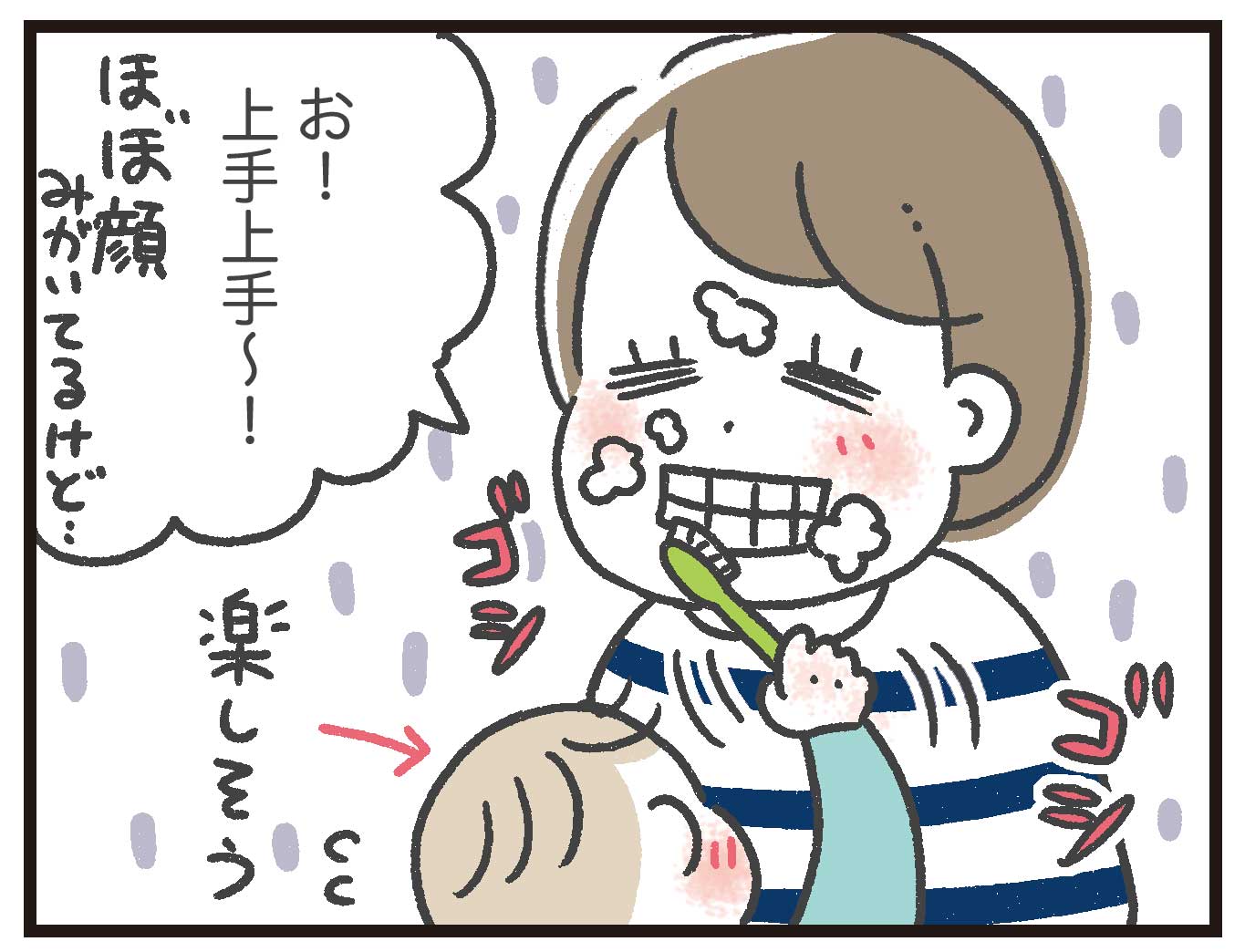 途中までは楽しそうに磨いてくれていたので(8割は顔面を磨いていましたが)