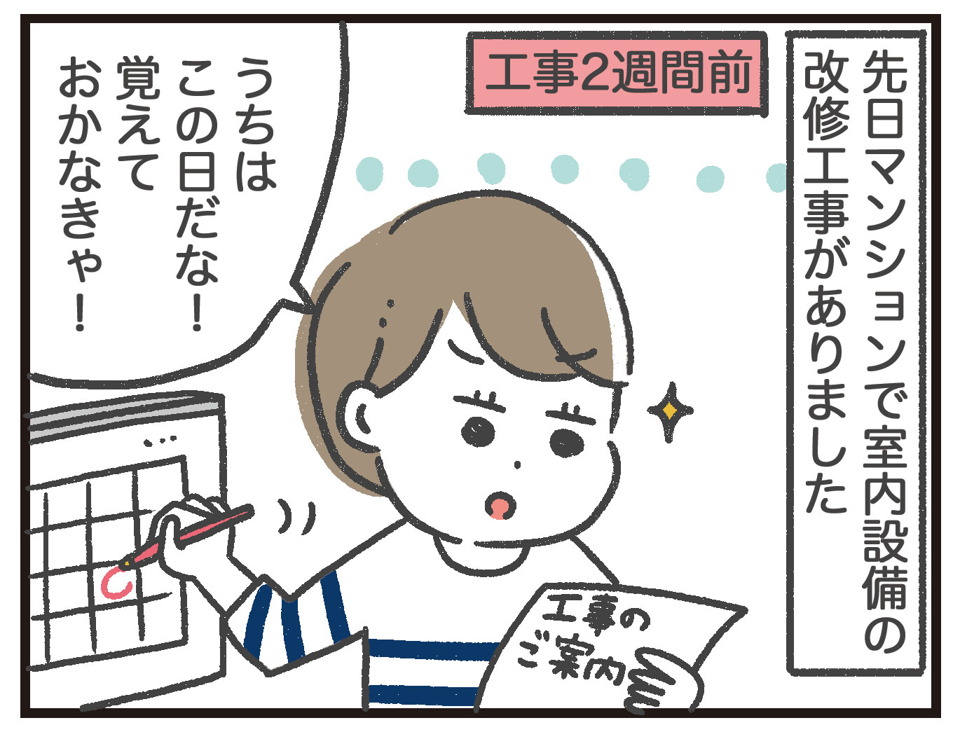 今日はマンションの工事に備えて、前々から心の準備をしたよ…というお話。