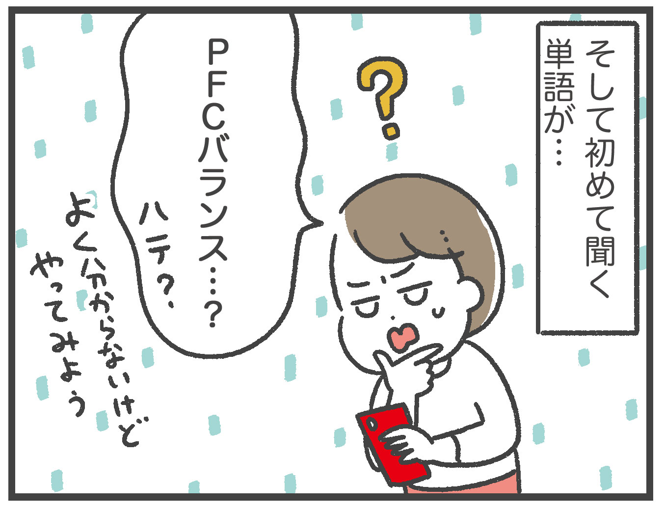 「食べるカロリーを決めて、その中で栄養素(PFC)のバランスを設定して守る。+筋トレ」というダイエットが有効らしい。