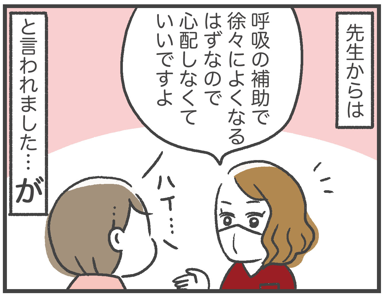 先生からは「ほとんどはそのうちきちんと肺胞が開いて呼吸できるようになるし、もし開かなくても治療で治ります。」ときちんと説明があったのに、不安で泣いてばっかりいました。