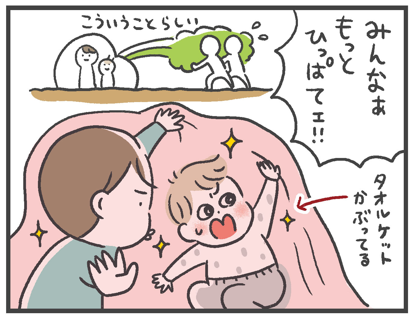 最近こういうごっこ遊びが増えてきて、結構迫真の演技を見せてくれるし、奇想天外なストーリーを作ってくれて楽しいです。成長したなぁ〜〜!