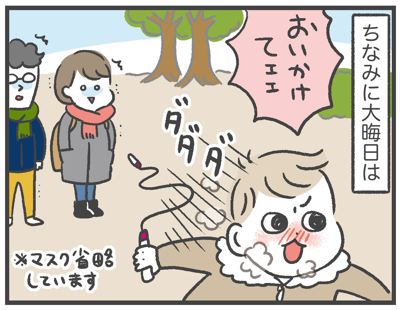 持って走るのが息子的縄跳びらしく、寒い公園で走り回って過ごしました…。